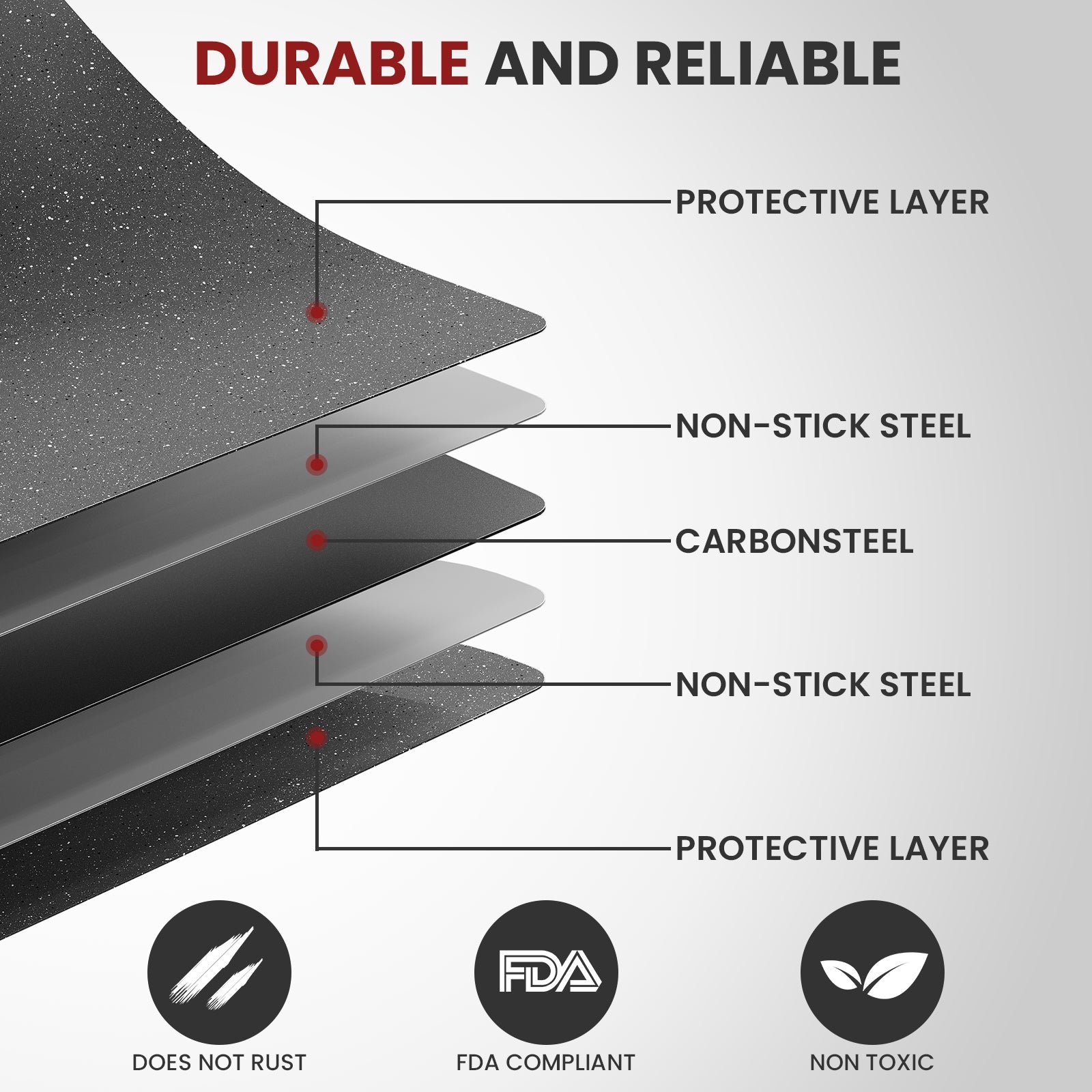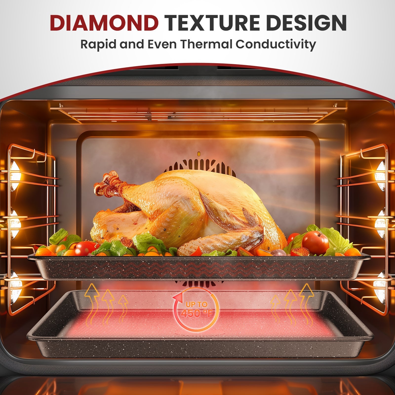 3 Pack Cookie Sheet Set, Speckled Baking Sheet Set with Square Texture Pattern, Carbon Steel Nonstick Bakeware Sets for Oven