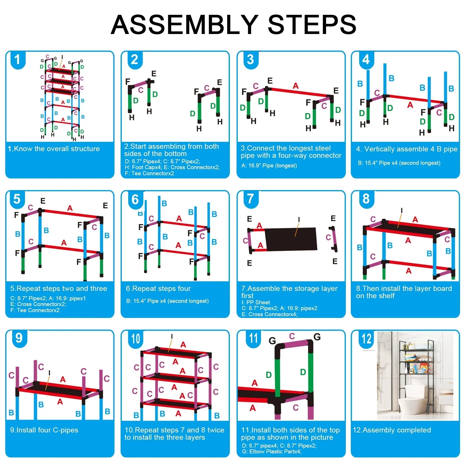 ARCTICICE 3-Tier Over Toilet Storage Rack for bathroom kitchen organizer, Black