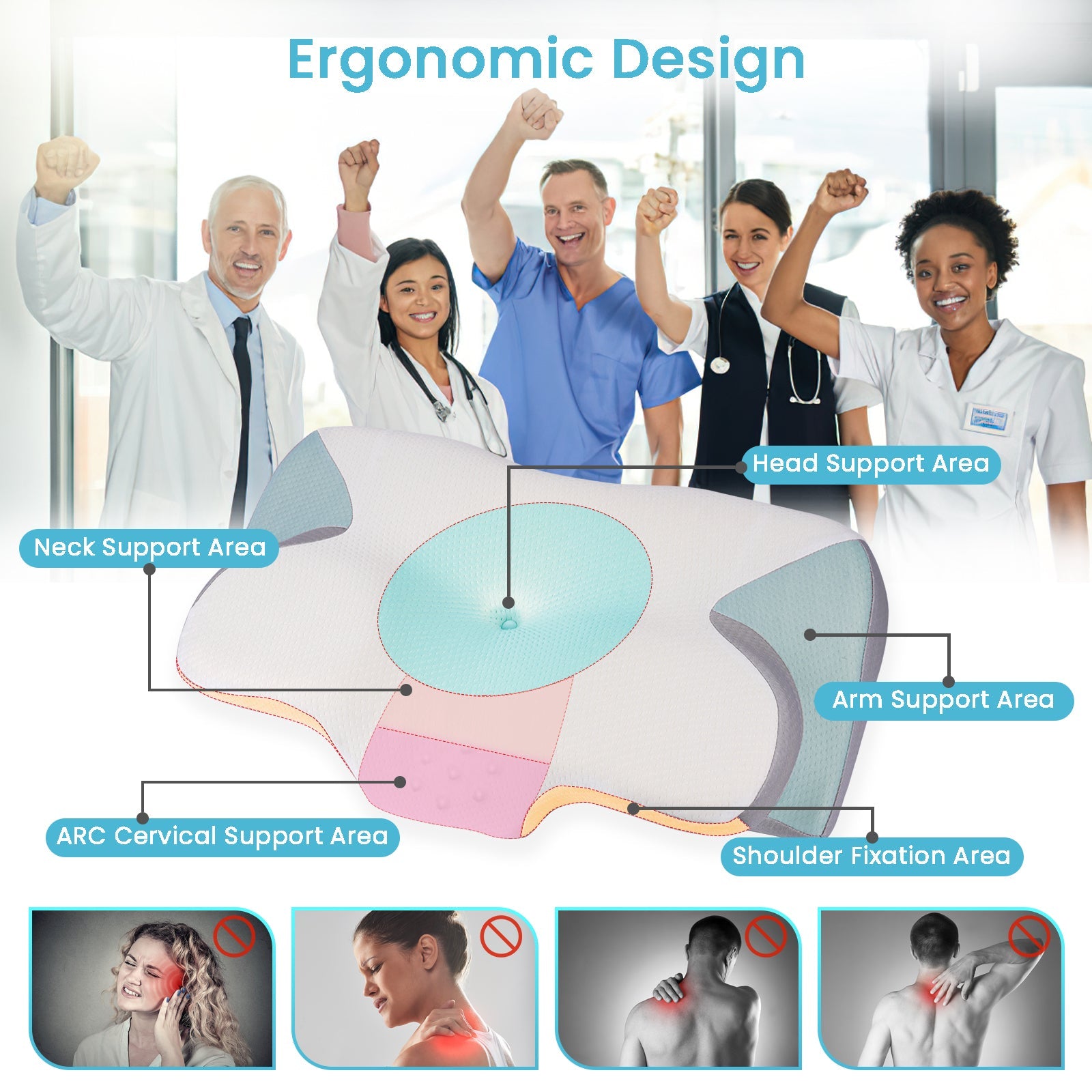 Cervical Pillow for Neck Pain Relief, Contour Memory Foam, Ergonomic Orthopedic Neck Support Pillow for Side, Back & Stomach Sleepers with Breathable Pillowcase, Grey