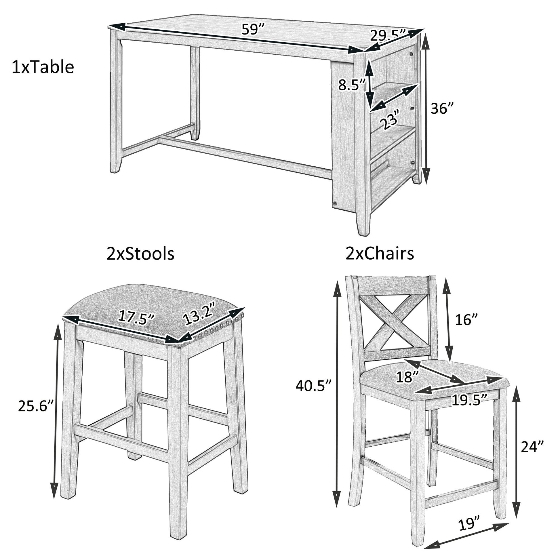 Churanty Counter Height Dining Table Set for 4,Wood Bar Table with Storage shelf and 2 stools & 2 Chairs for Small Places, White