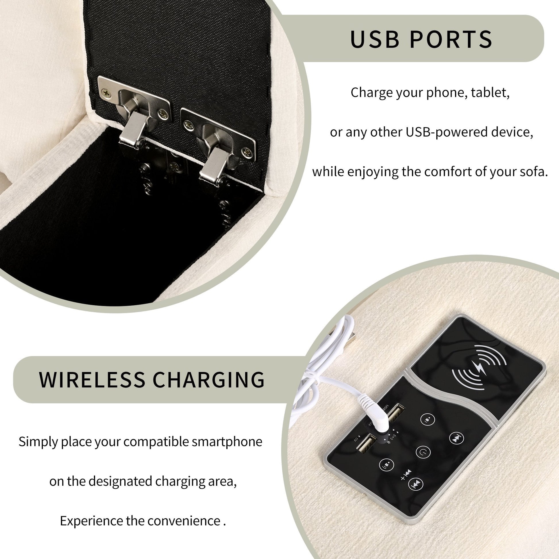 Churanty Modular Sectional Sofa with USB Charge Ports, Upholstered 4 Seater Free combination Couch with Wireless Charging and Built-in Bluetooth Speaker in Arm for Living Room Apartment,Beige
