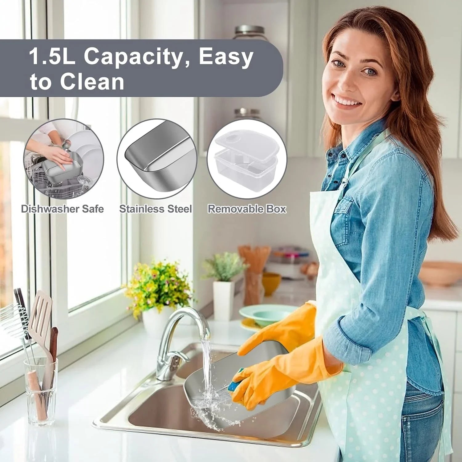Electric Lunch Box Food Heater, AOKIWO 60-80W Electric Heating Lunch Boxes Lunch for Car/Men/Adults/Home/Work, 1.5L Removable 304 Stainless Steel Container, 110V/12V/24V, with Fork & Spoon