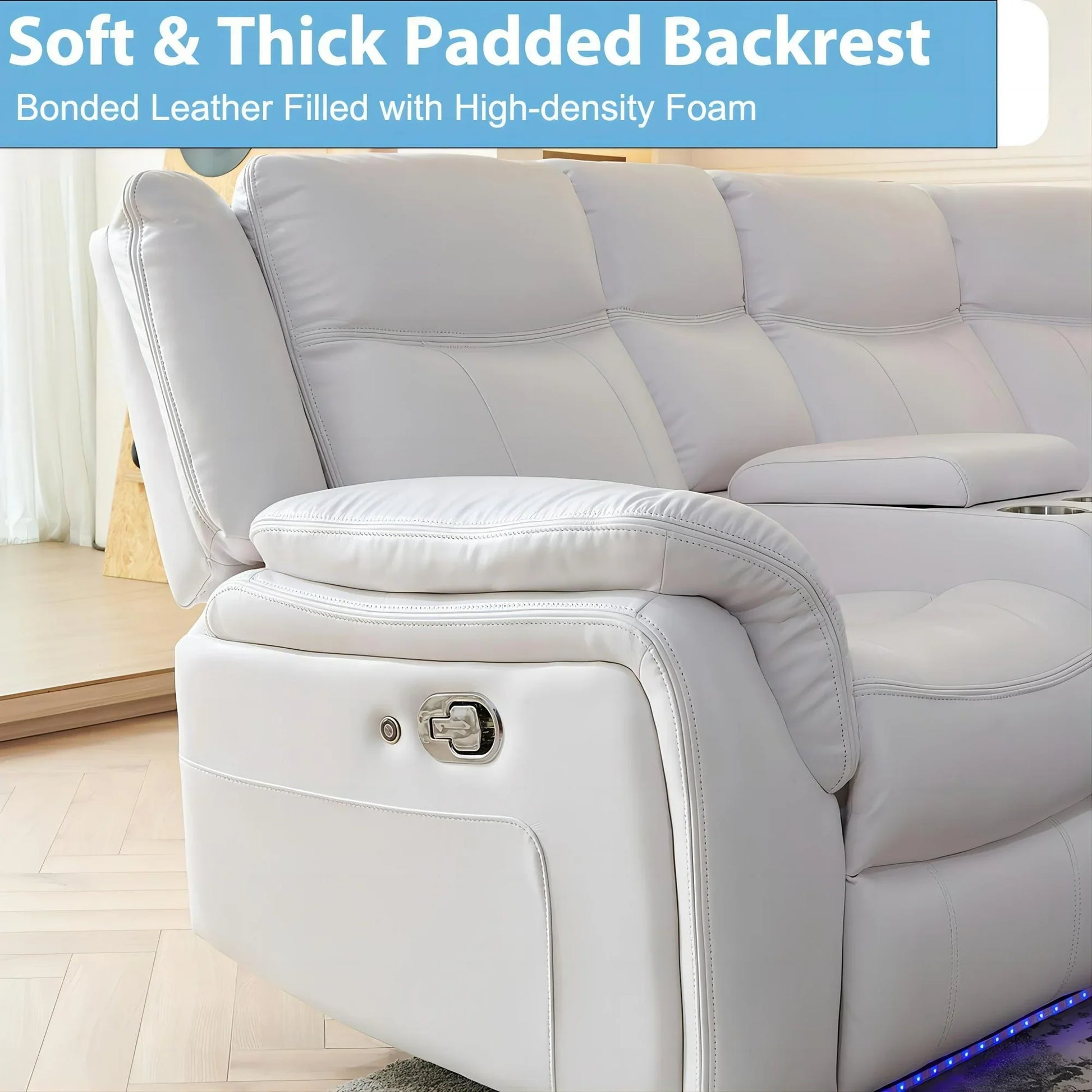 ELIASER Manual Recliner Sofa Sets with LED Lights,Faux Leather Reclining Sectional Couch for Living Room Furniture Sets with USB Port,Storage Console Cup Holders White