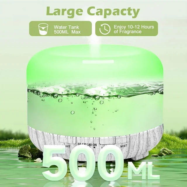 Fimilo 500ml Essential Oil Diffuser with 6*10ml Essential Oils Set, Upgraded White Wood Color Base Flower Aromatherapy Diffusers with Remote Control, Aroma Diffuser for Home Office
