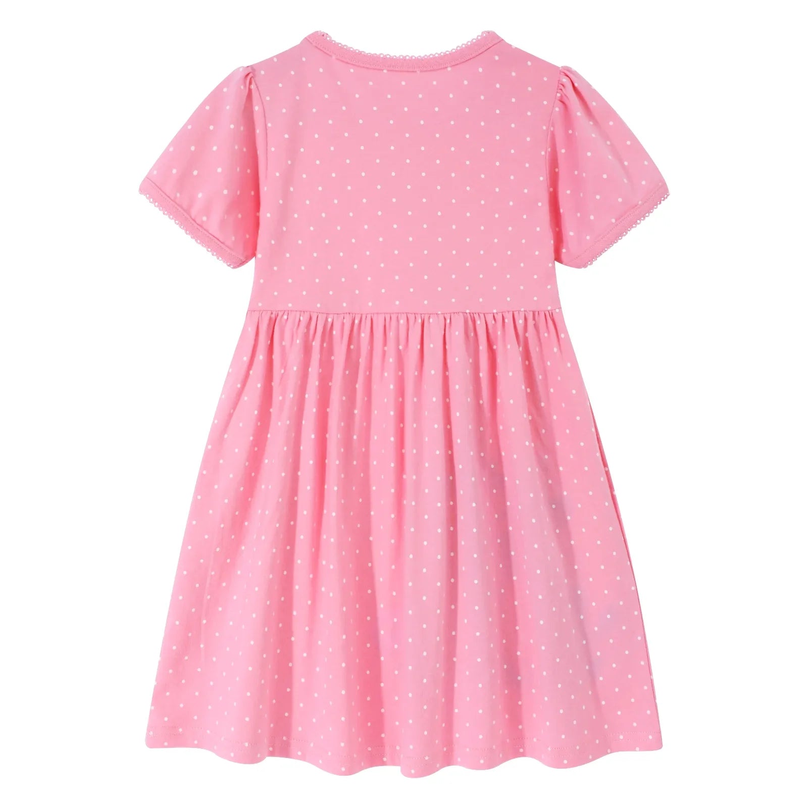 HILEELANG Baby Girls Short Sleeve Easter Dress Cotton Casual Pink Dot Bunny Applique Jersey Shirt Playwear Dresses 2T