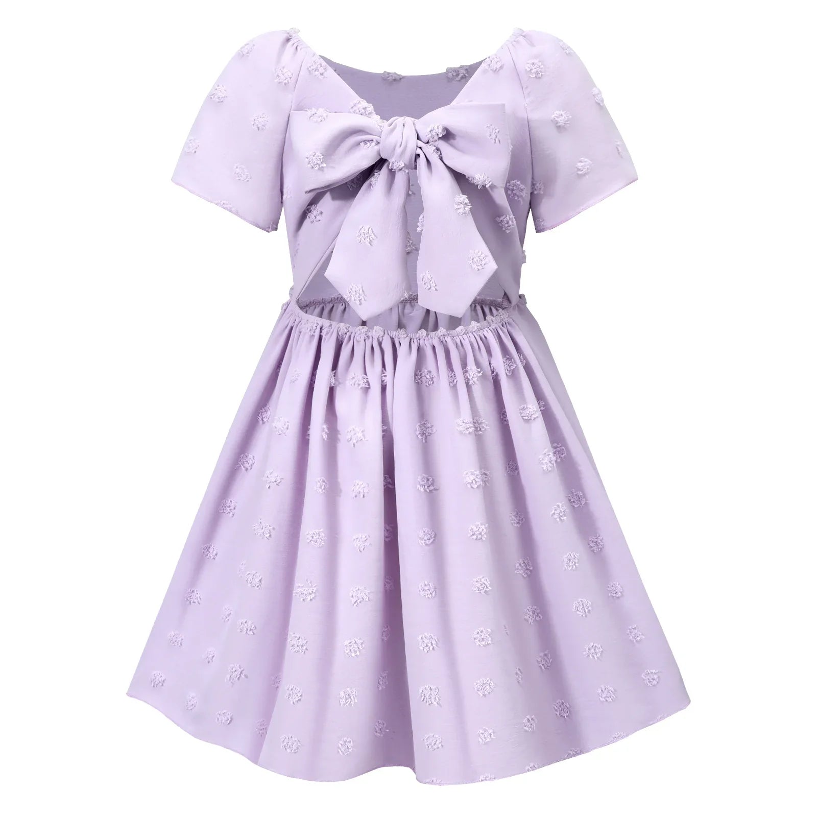 HILEELANG Little Girl Easter Dress Short Sleeve Summer Lavender Casual Tie Back Princess Elegant Party Dress 4-5T