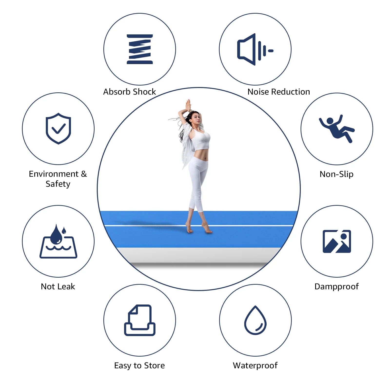 Jacgood 20FTx6.6FT Air Tumbling Track Inflatable Air Gymnastics Mat 8" Thickness for Home /Training/Cheerleading/Yoga/Water Sports with Electric Air Pump