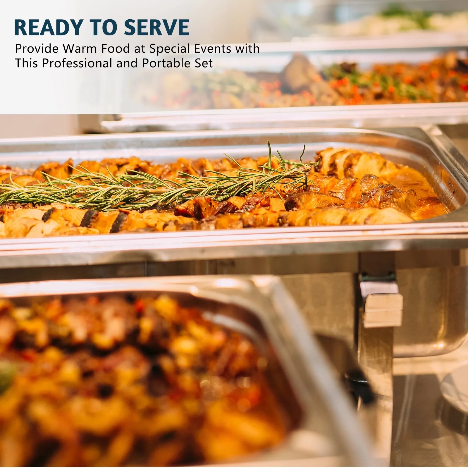 Jacgood Chafing Dish Chafer 8 QT Full size Stainless Steel Food Warmer Foldable Stove Dish Set Rectangular Chafing Dish Full Buffet Catering 1 pack