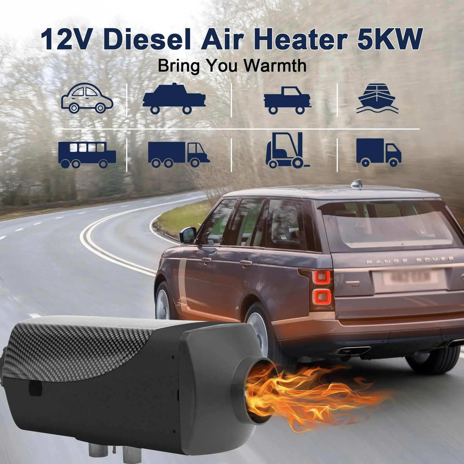 Jacgood Diesel Heater 12V Muffler 8KW Air Diesel Heater 12V Diesel Air Heater with LCD Switch for Car Trucks Motor- Home Boat Bus Can,Black