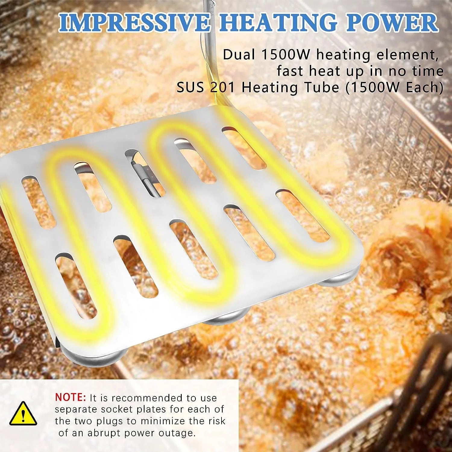 Jacgood Electric Countertop Deep Fryer 6L Dual Tank 2500W Commercial Restaurant Steel