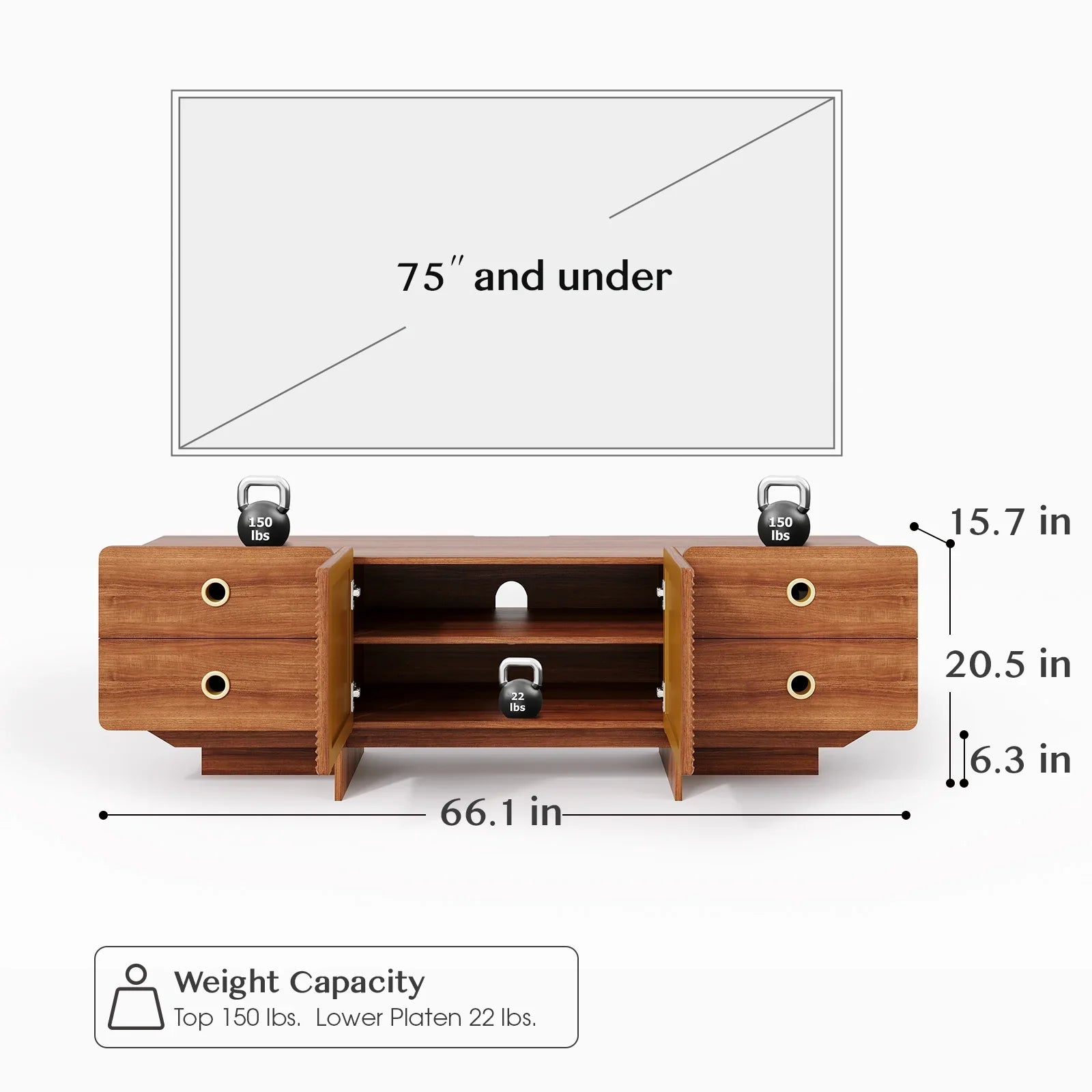 JOINICE Mid Century Modern Boho Media TV Stand, with 4 Drawers, for Living Room,Bedroom