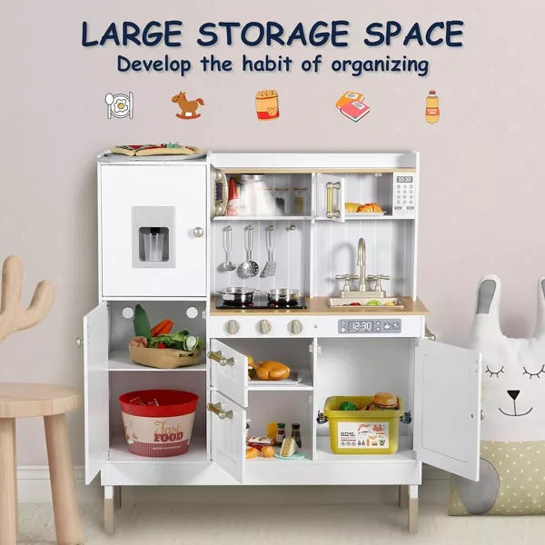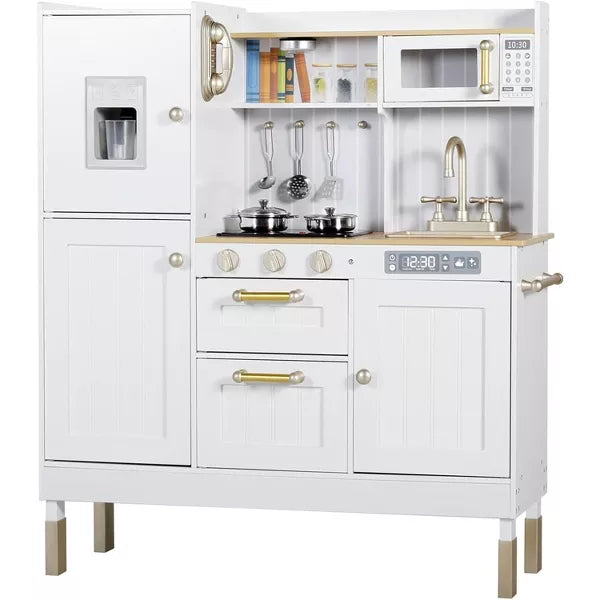 Kinder King Wooden Kids Play Kitchen, Toy Kitchen Playset for Toddler, Realistic Kitchen Sets w/Lights & Sounds, Gift for Boys Girls Age 3+, Gold