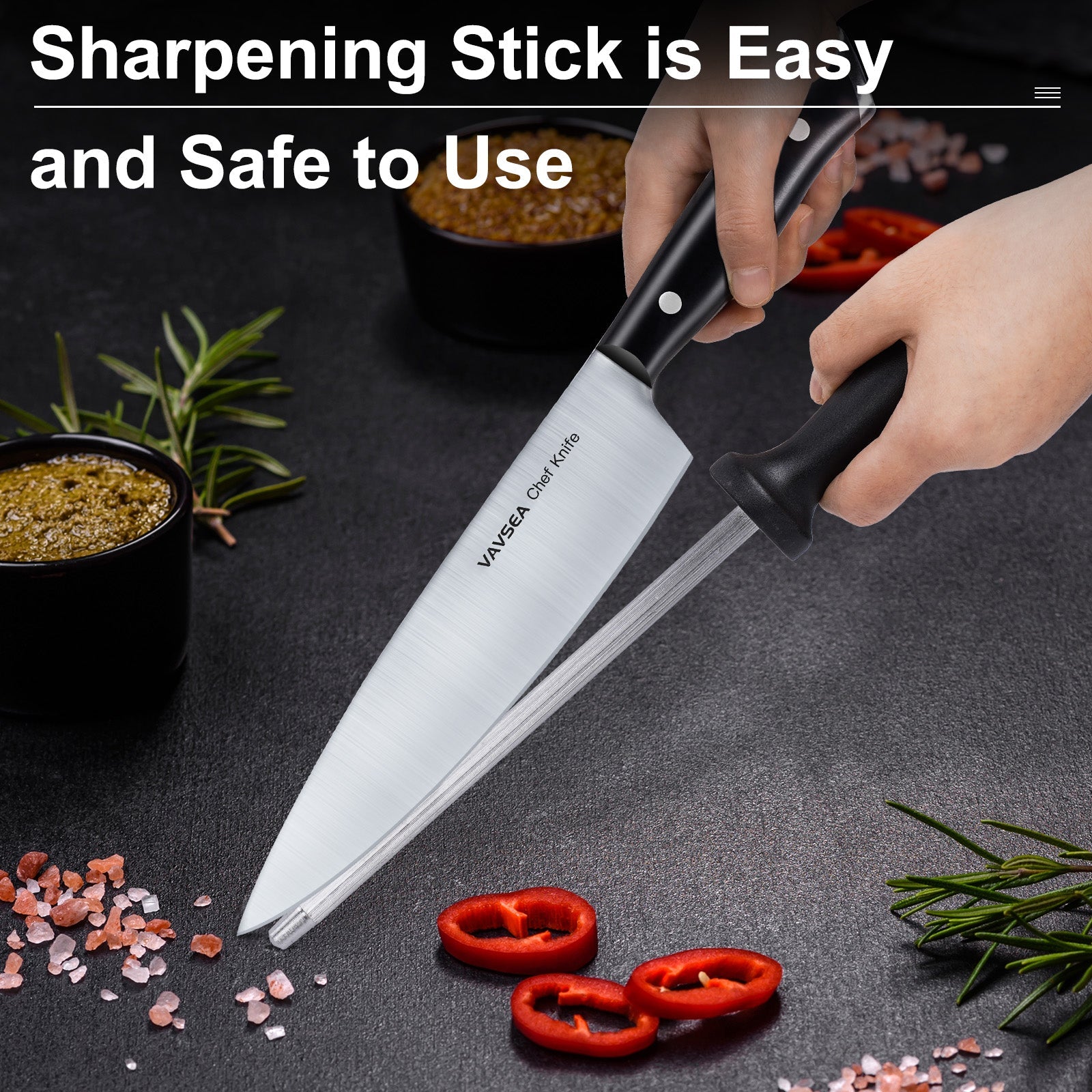 Knife Block Set,12 Pcs German Stainless Steel Kitchen Knife Set with Block, Knives Set with Self Sharpening, Dishwasher Safe, Anti-slip Handle, Black