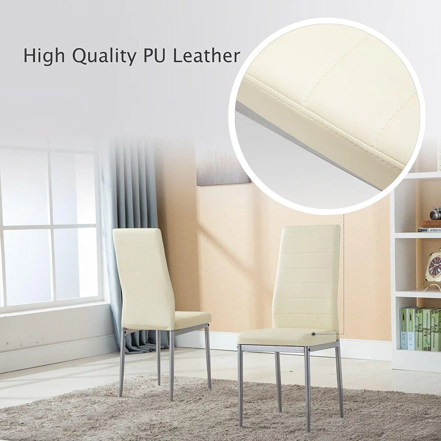 Ktaxon 5 Piece Dining Table Set Dining Table & 4 Leather Chairs,Glass Top Kitchen Dining Room Furniture,White