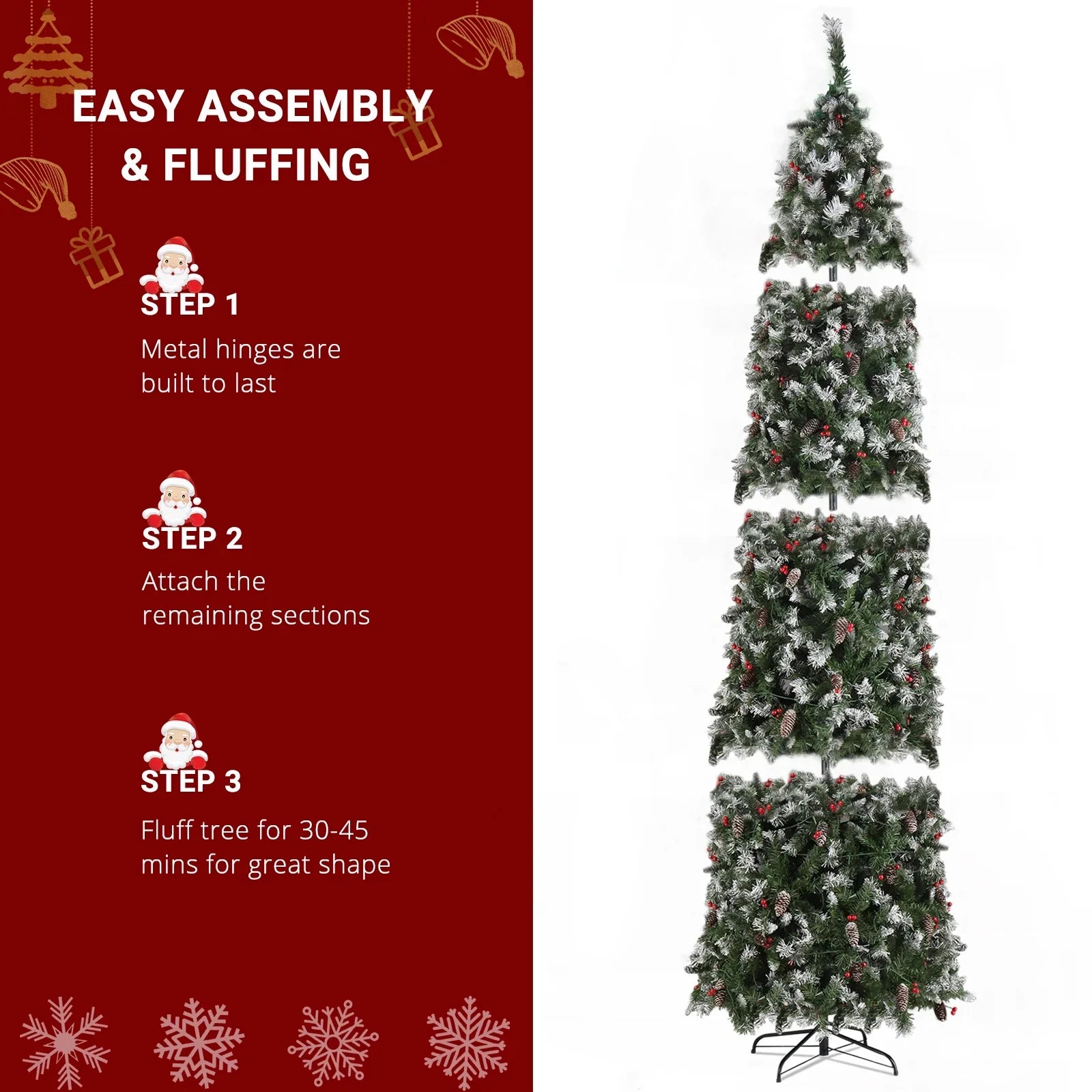 Ktaxon 9ft Pre-lit Slim Christmas Tree with Remote Control, Red Berry & Pinecones Xmas Tree with 460 LED Lights, 1298 Branch Tips, Green