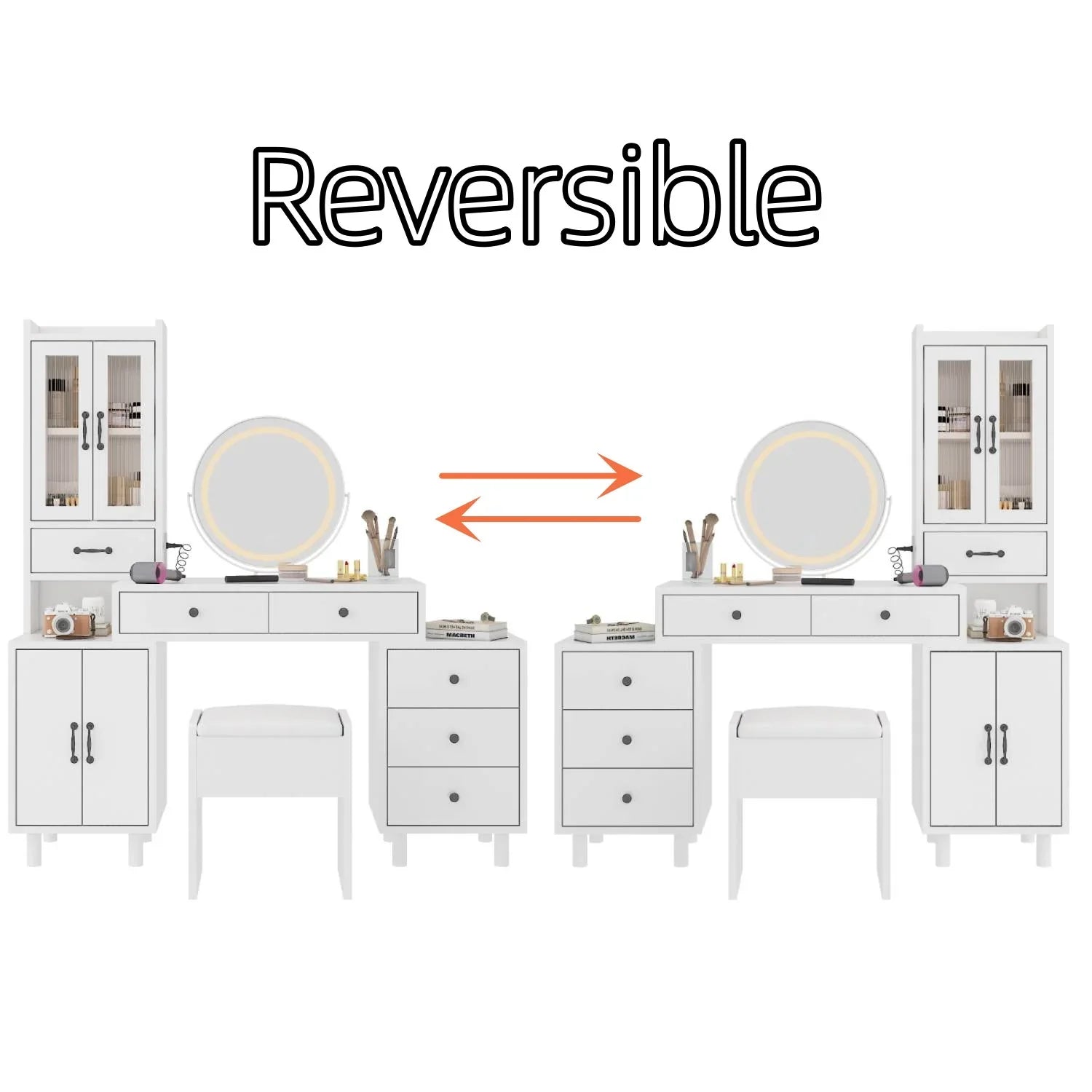 Ktaxon Makeup Vanity Set with USB Charging&3 Color Lighted Mirror, Large Makeup Vanity with Storage Cabinet and Drawers, Dressing Table for Girls, Women, Gold, White