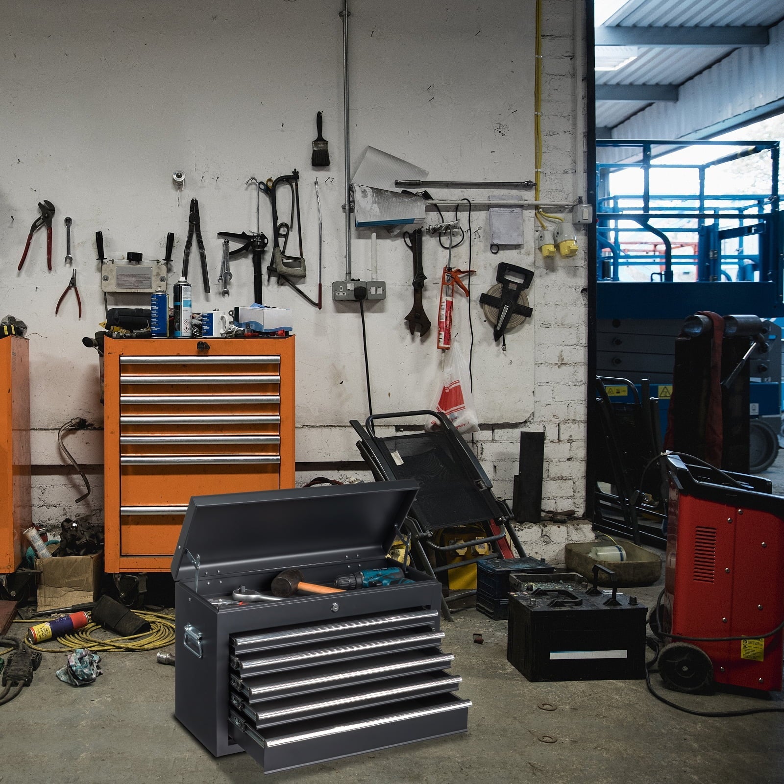 Ktaxon Tool Box, Portable 5 Drawer Steel Toolbox with Top Storage Tray & Carrying Handle, for Garage Trunk Household, Black
