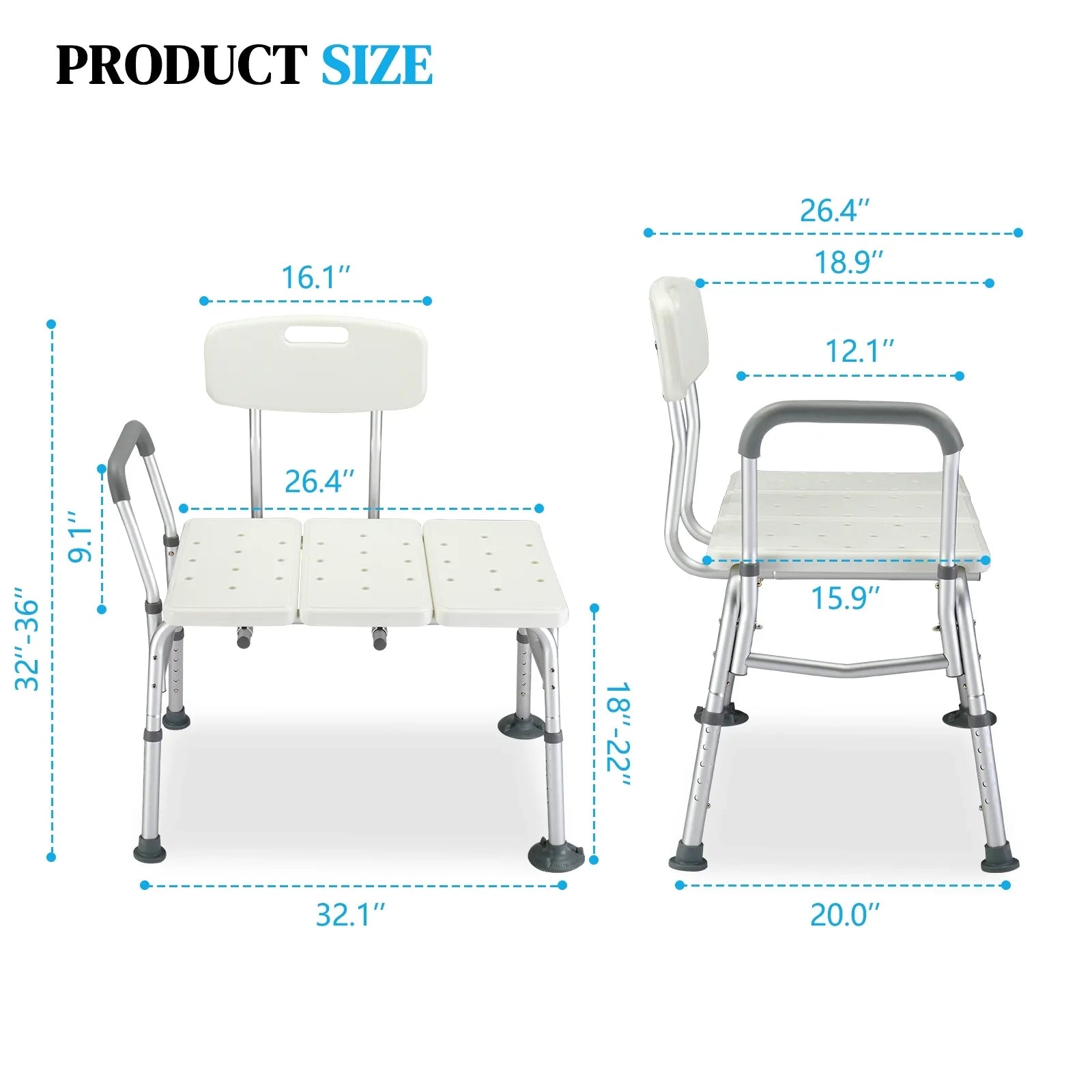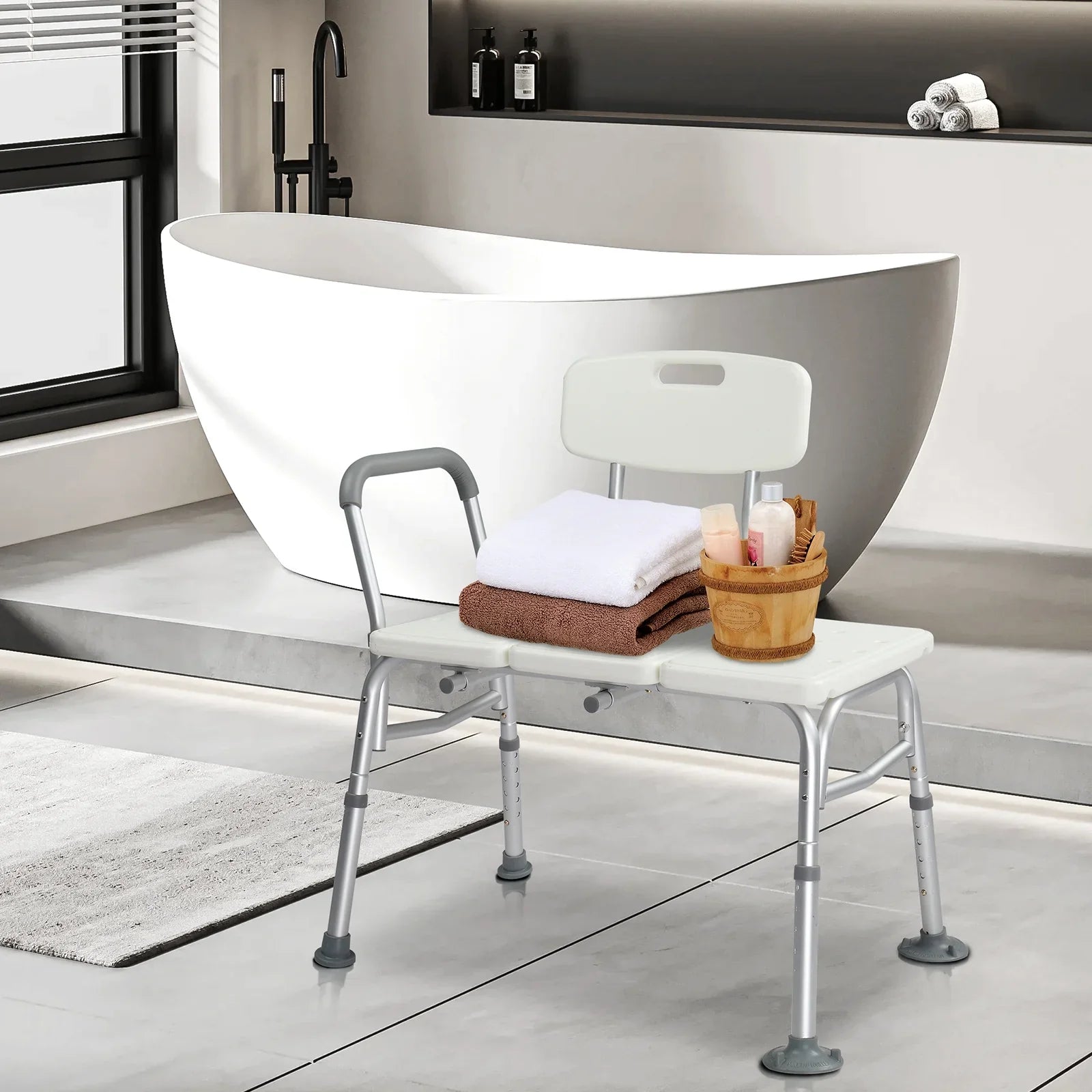 Ktaxon Transfer Bench, Bath Shower Chair Seat, Height Adjustable Shower Stool, for Elderly, Disabled, Supports 330 lbs, Rubber Handrail