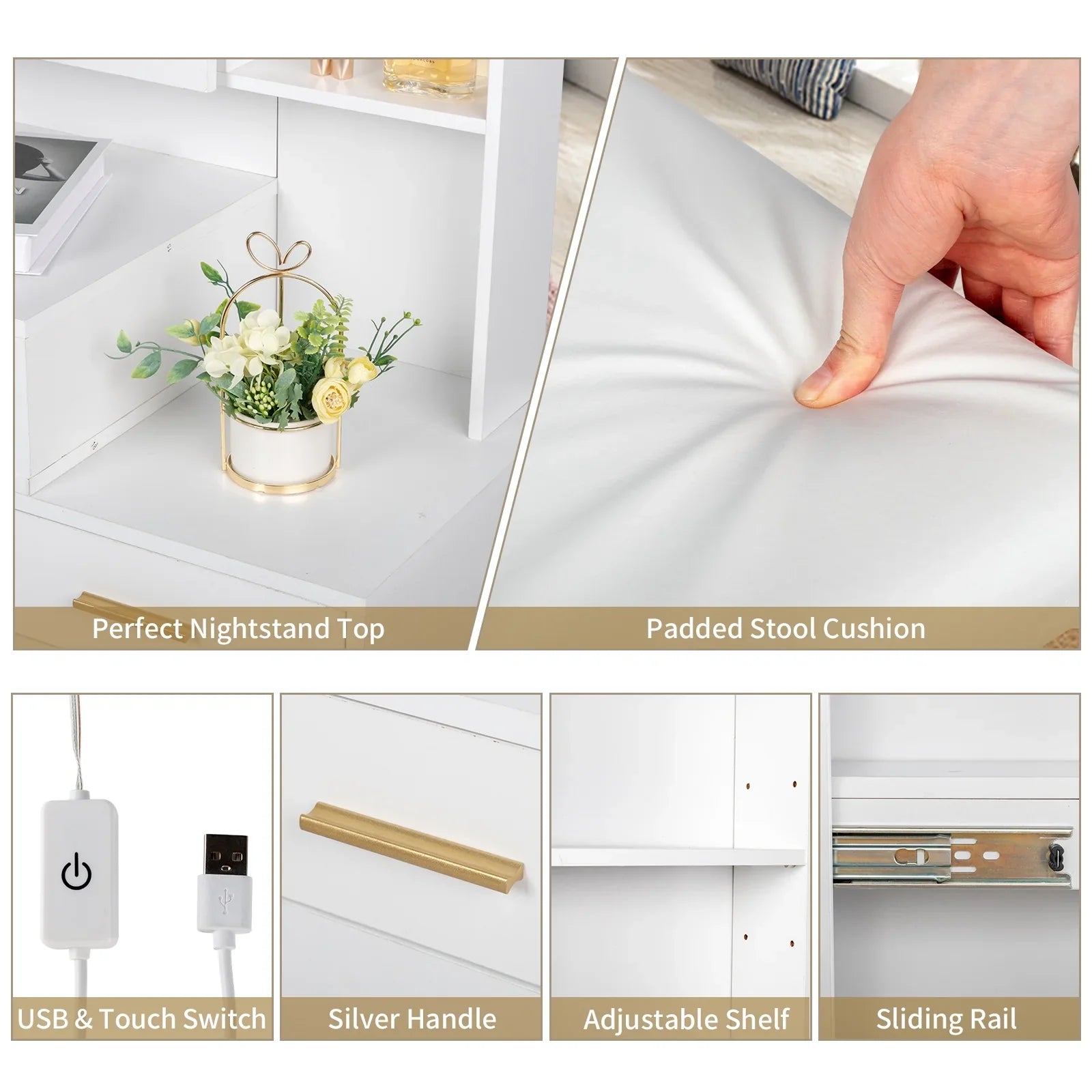 Ktaxon Vanity Table Set with Sliding Mirror, Makeup Table with Storage Cabinet, Dressing Vanity Tables, Dresser Desk for Girls, Women, White