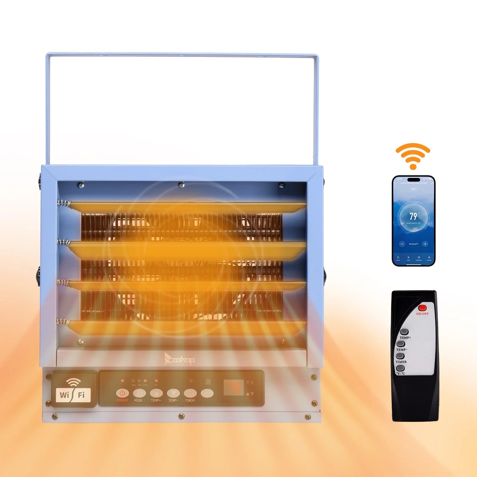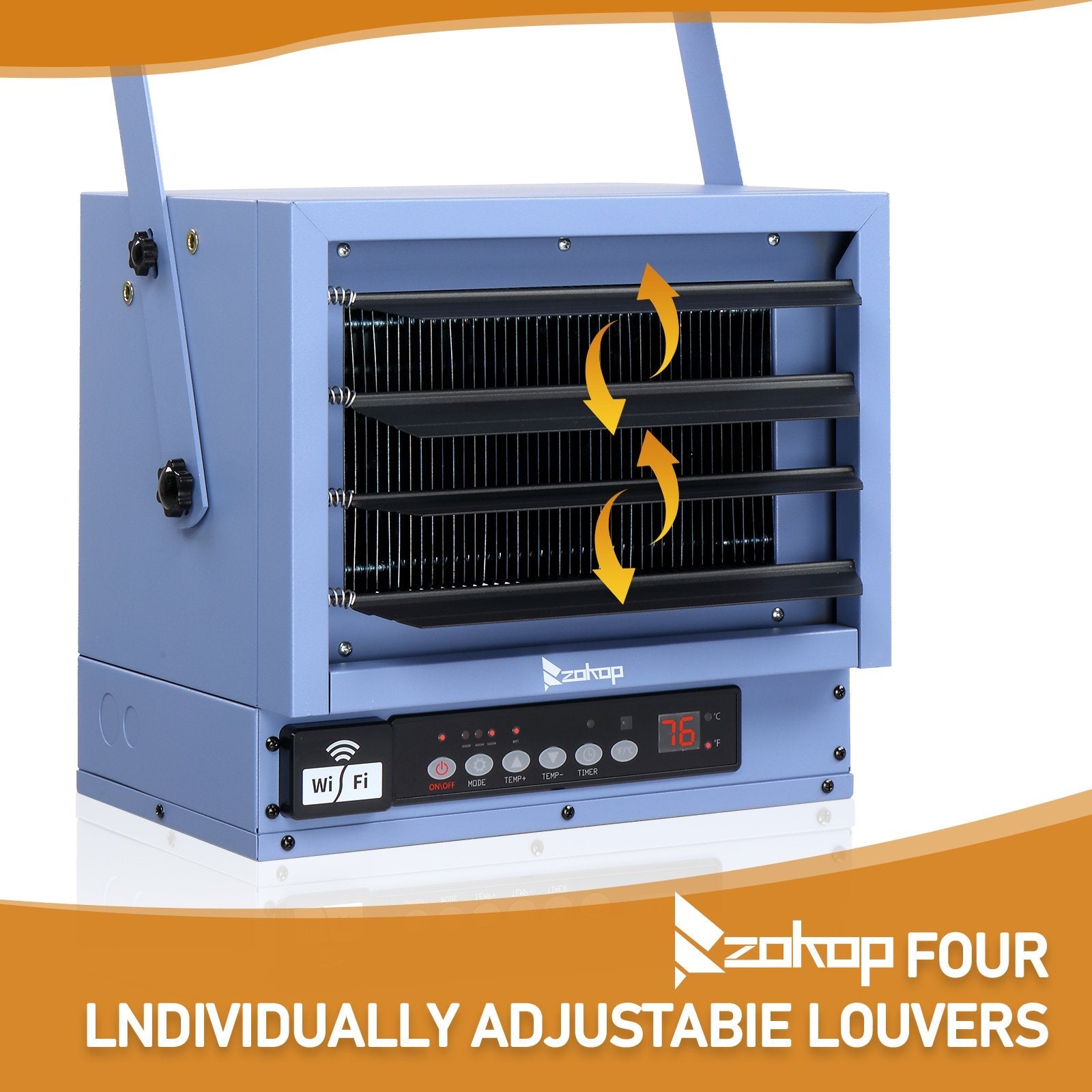 Ktaxon WiFi Smart Electric Garage Heater, 5000W Ceiling Mount Space Heater, 240-Volt Hard-Wired Heater Fan-Forced Shop Heater with Digital Thermostat, 12H Timer, Remote Control, Blue