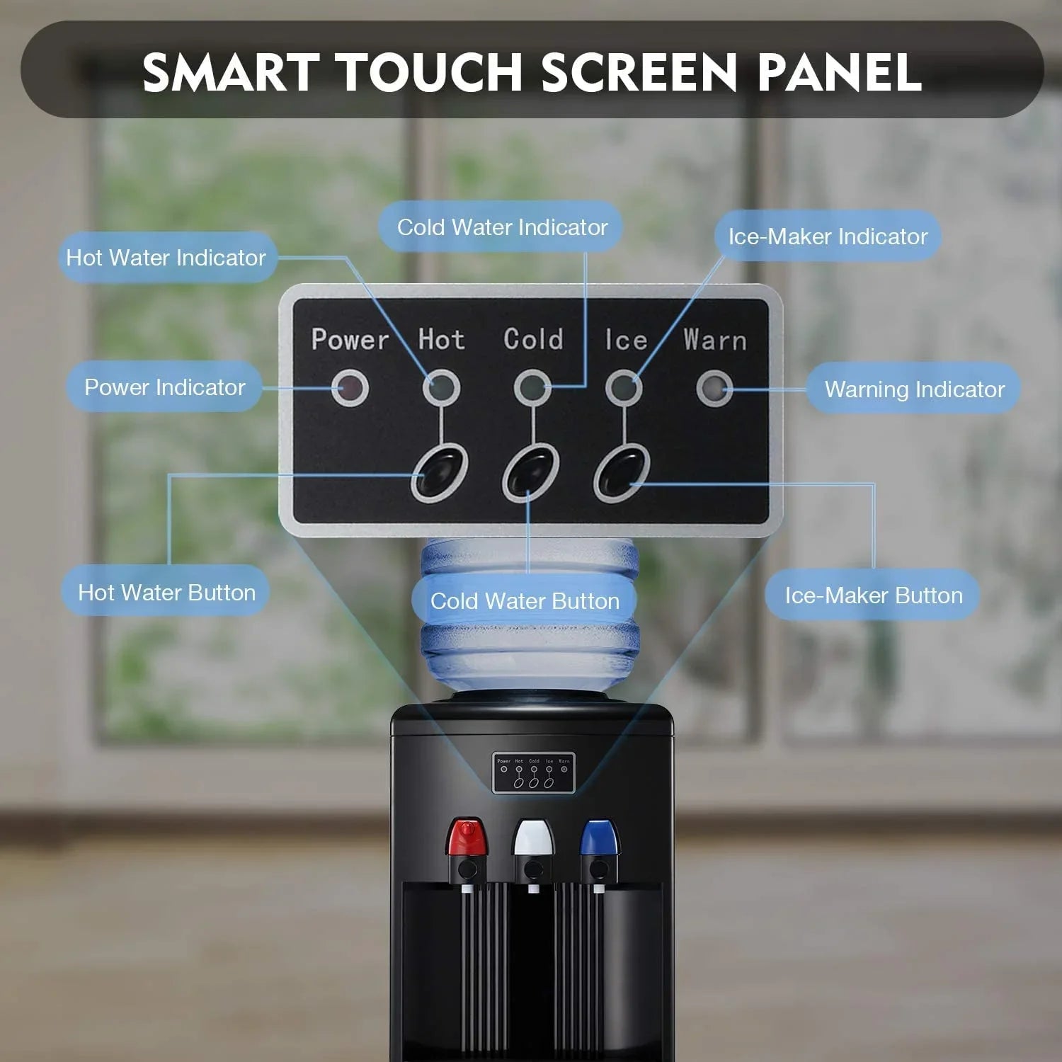 LHRIVER Water Dispenser with Ice Maker, 3-in-1 Water Dispenser for 5 Gallon Bottle, Water Cooler Dispenser Built-in Ice Maker with 3 Temperature Settings, Easy Cleaning, Child Lock-BLACK