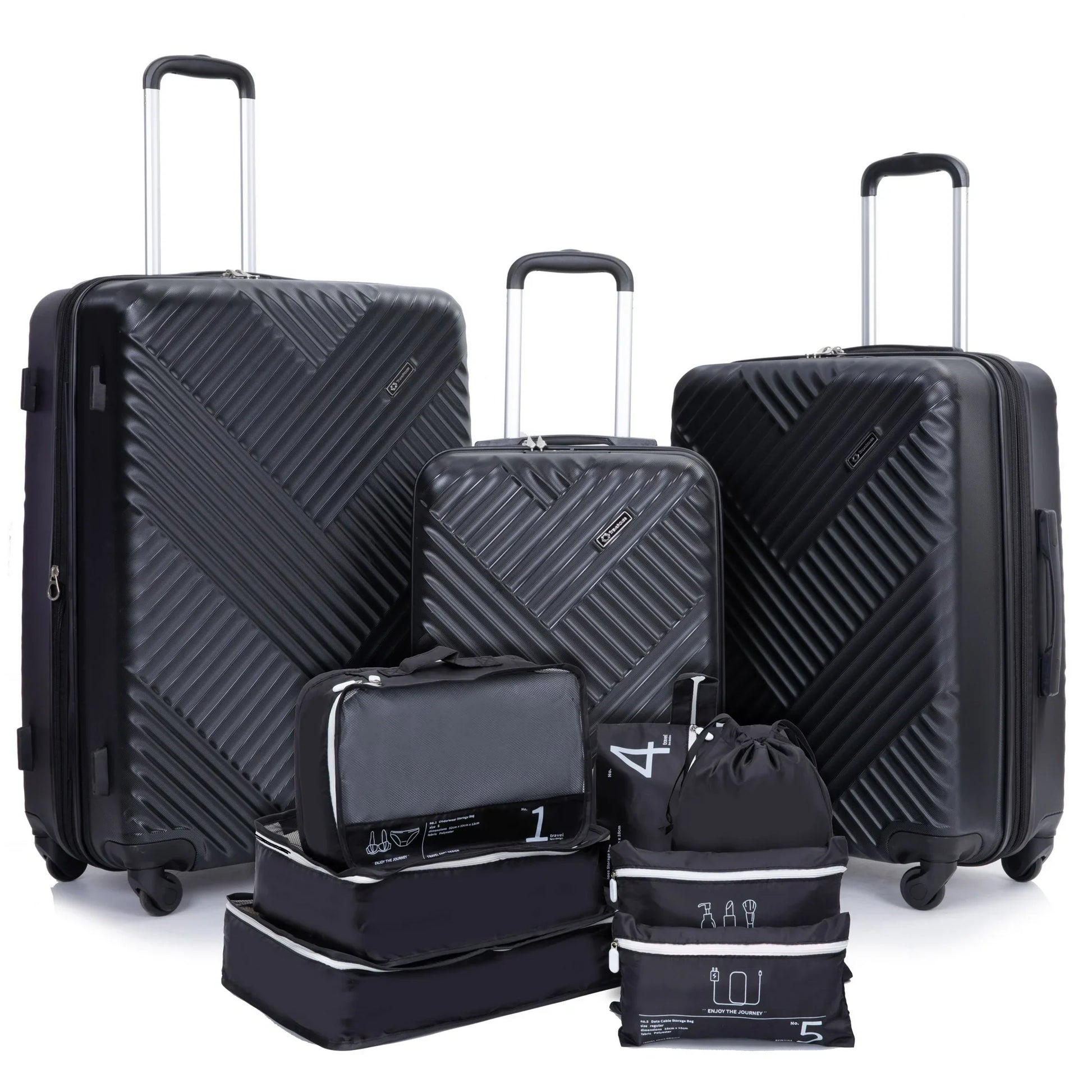 Luggage Sets 3 Piece Travel Suitcase Set with 7PCS Organizer Bags, Black