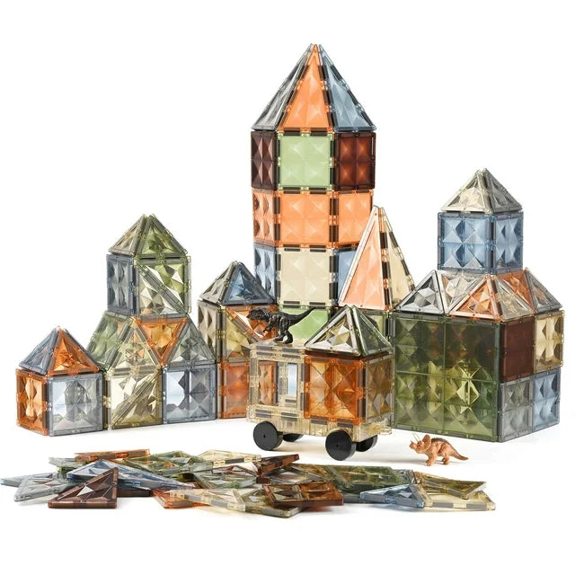 Magnetic Tiles,Magnetic Blocks with 2 Cars,Magnet Tiles Building Blocks Set,STEM Preschool Sensory Educational Toys Gifts for Toddlers Kids Boys 3 4 5 6 7 8 9+ Year Old
