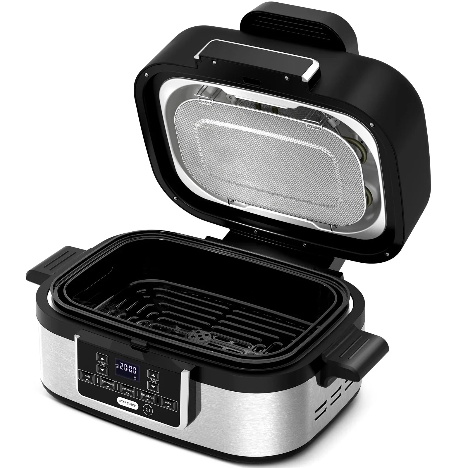 Moifoi 5-in-1 Electric Indoor Grill & Air Fryer Combo, 5QT Large Capacity, Stainless Steel Smokeless, Roast, Bake, Dehydrate, Beef & Fries