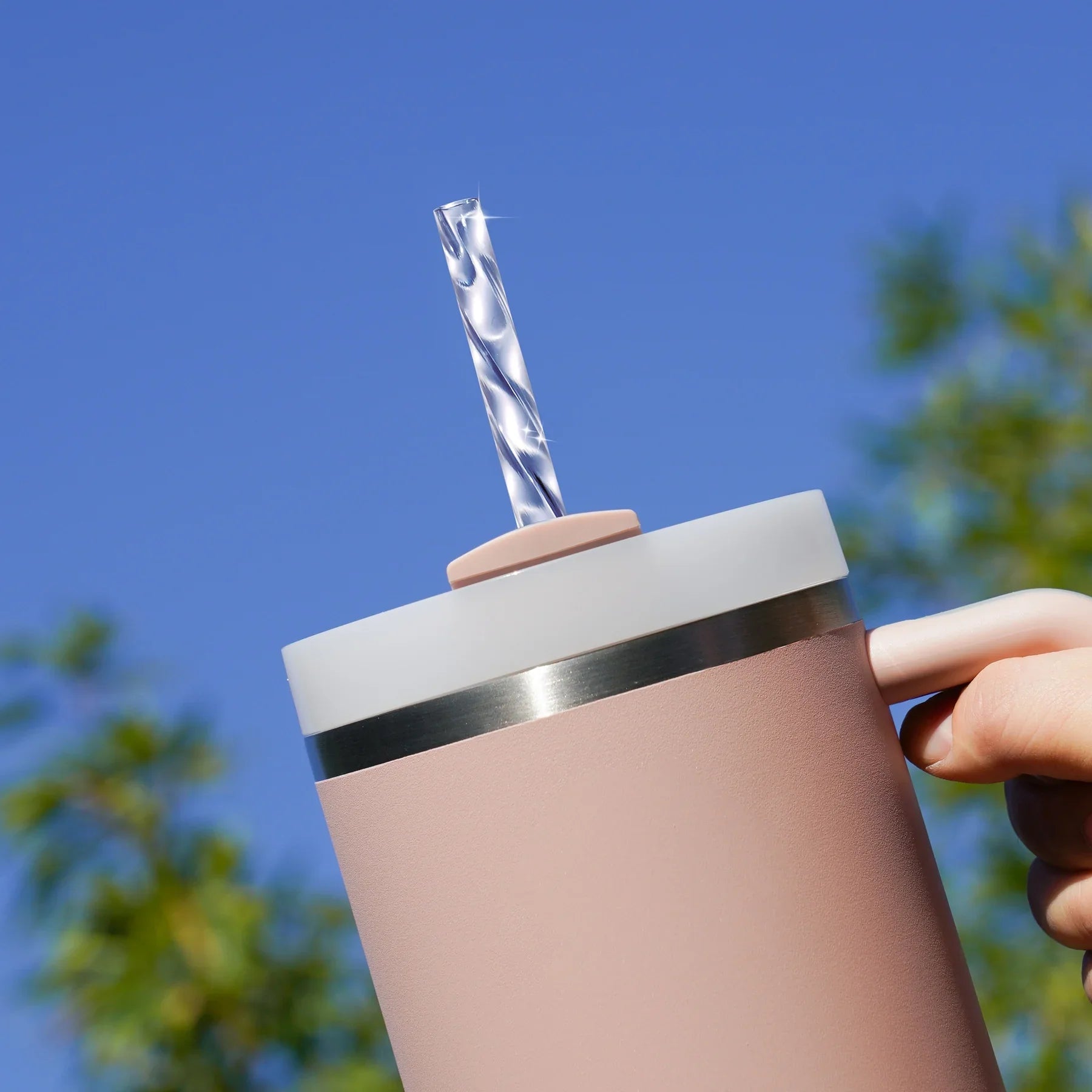 NiHome 12PCS Wave Pattern Plastic Drinking Straws for Stanley 40oz Tumbler with 2 Cleaning Brushes, 12" Long Durable PETG BPA-Free & Non-Toxic for Water, Cold Drinks, Milkshakes(Mixed Colors)