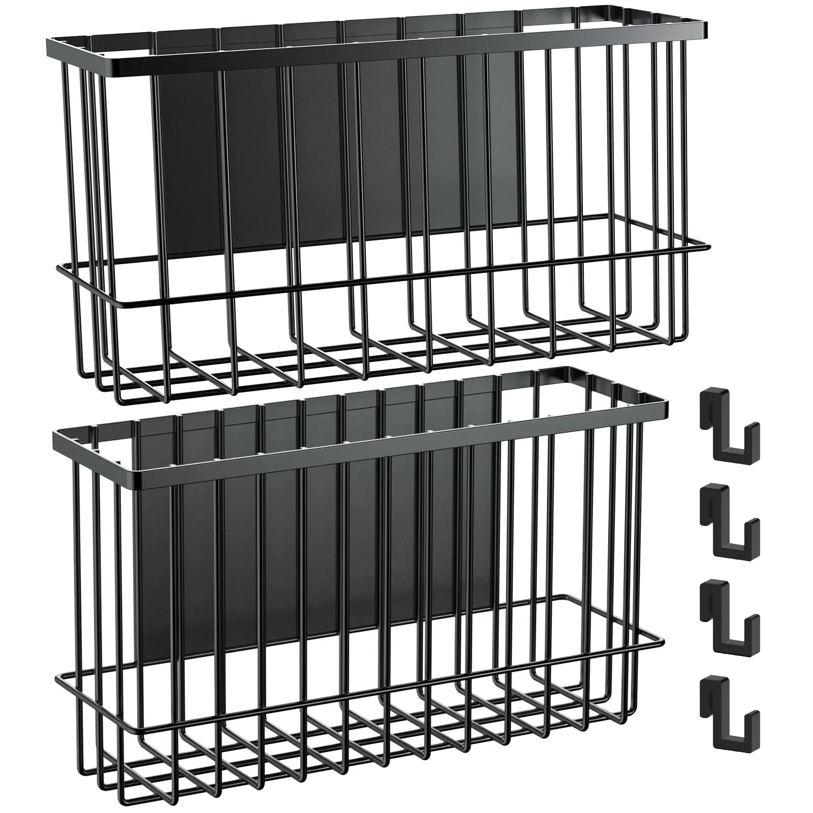 NiHome Magnetic Metal Basket Organizers 2PCS Medium & Small, Versatile Storage for Kitchen & Office Holds Up to 14 lbs, Easy Attach to Refrigerator or Any Magnetic Surface, Space-Saving Design(Black)