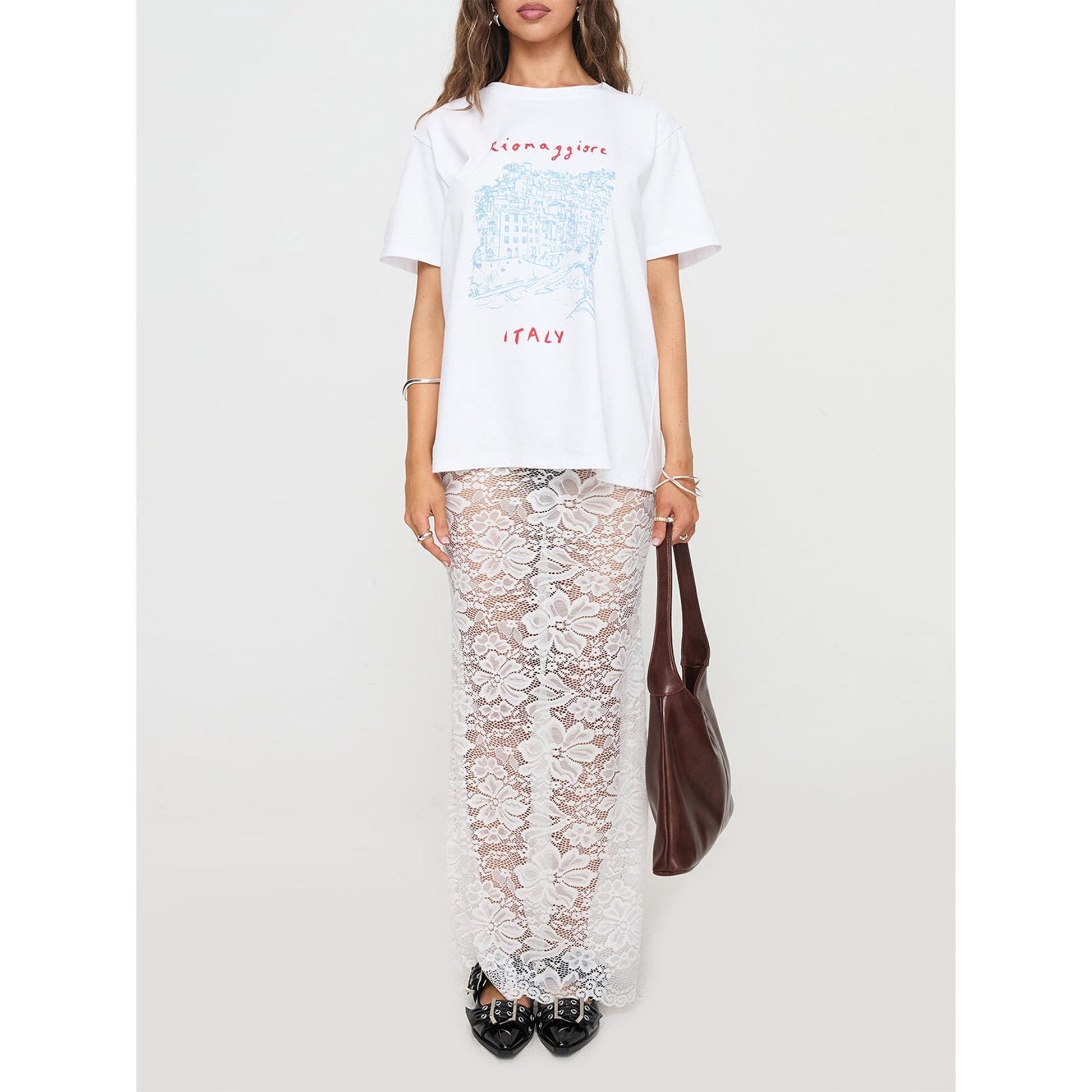 Peyakidsaa Women's Lace Skirt Summer Skinny Skirt Sheer Lace Floral Long Skirt