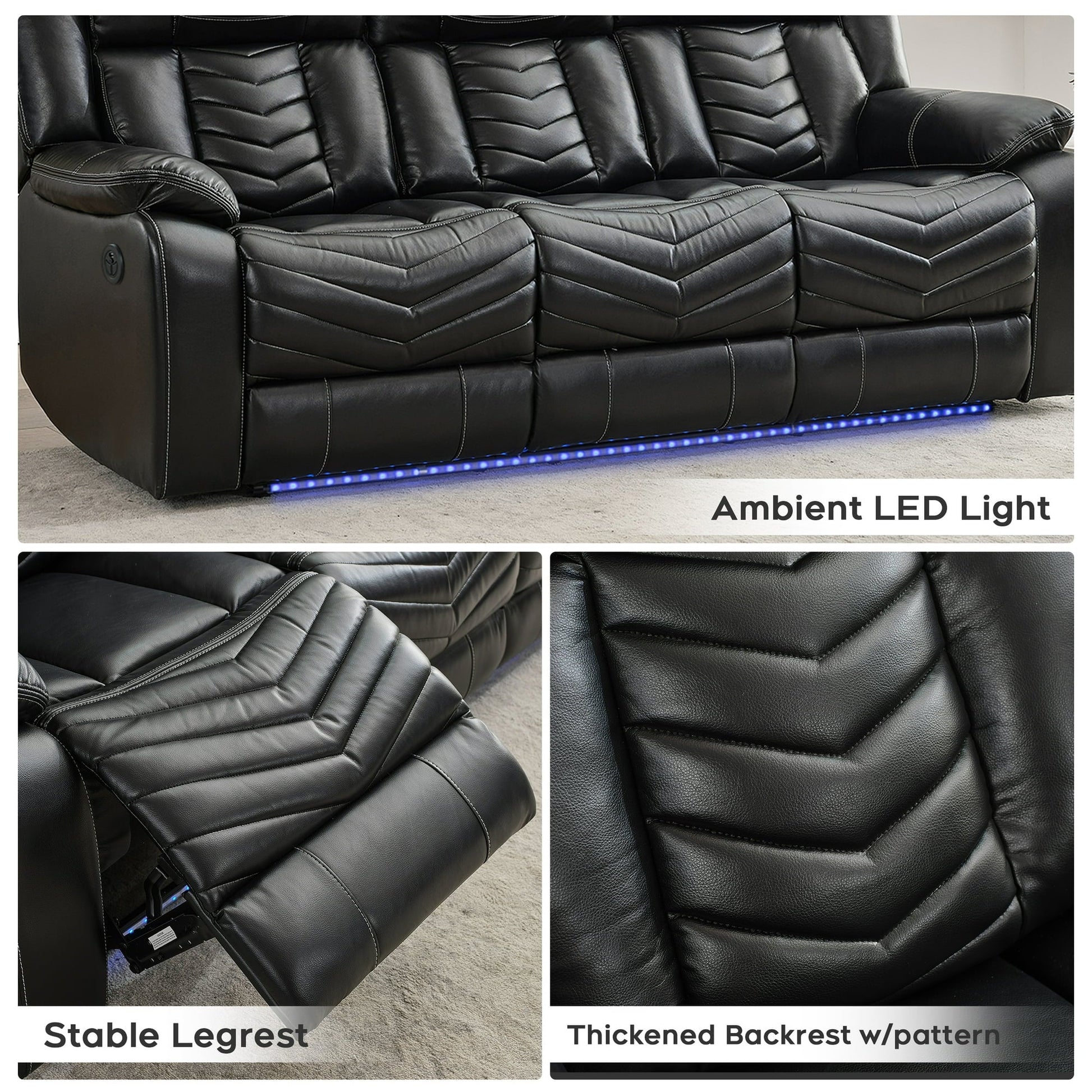 Power Recliner Sofa Sets with Bass Speaker,Wireless Charger,LED Light Manual Reclining Living Room Furniture Sets