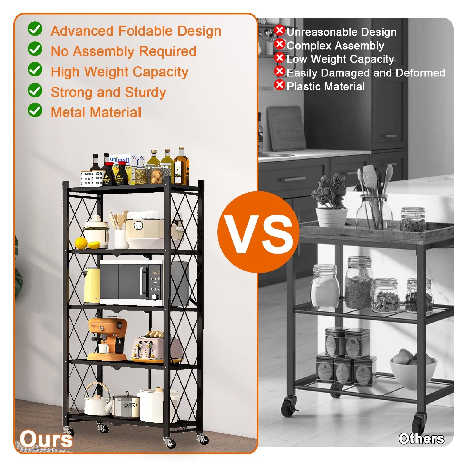PRIJESSE 5-Tier Foldable Storage Shelves Metal Rack Heavy-Duty Storage Shelf Supporting 330LBS Loads Black