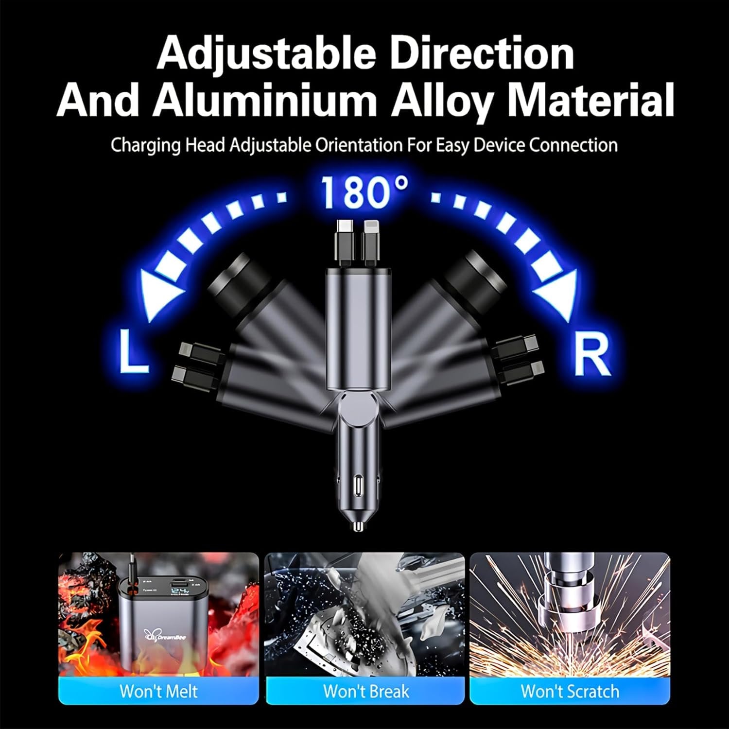 Retractable Car Charger,Super Fast USB Car iPhone Charger,Dual iPhone Retractable Cables (31.5 inch) and 2 USB Ports Car Charger Adapter for iPhone14/13/12/11 Pro Max/XS MAX/,iPad,Samsung