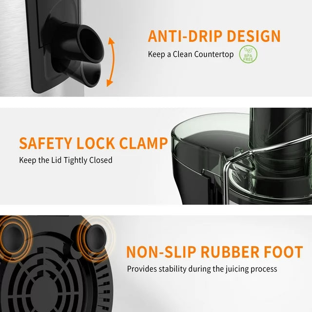 VAVSEA Juicer Machine 600W, Juice Extractor, Anti-Drip Press Centrifugal Juicer with Big Mouth 3" Feed Chute for Whole Fruit Vegetable, BPA-Free, Easy to Clean
